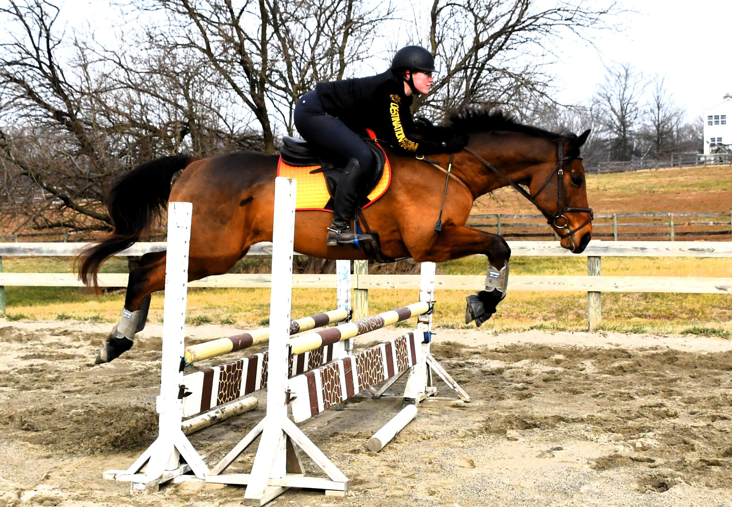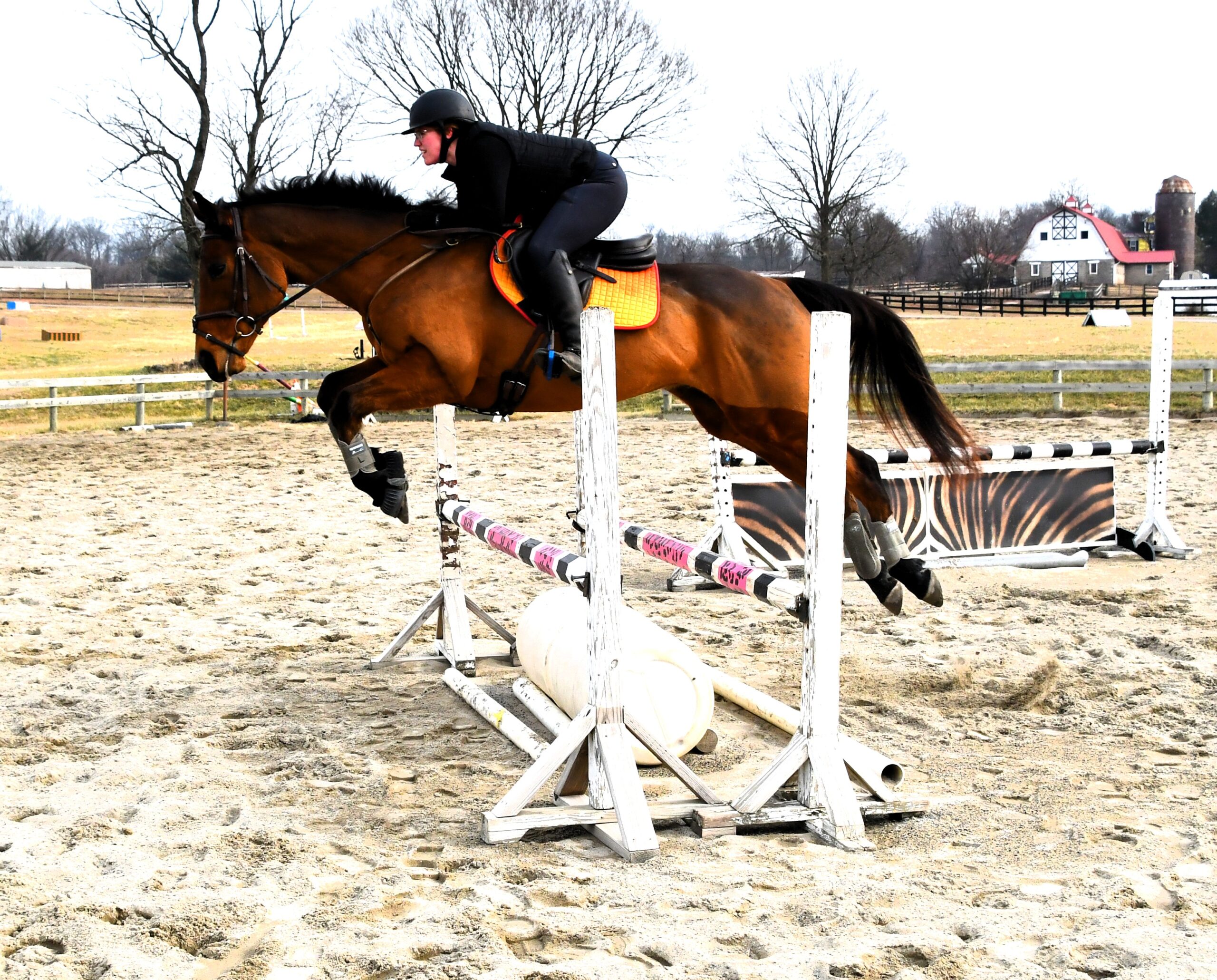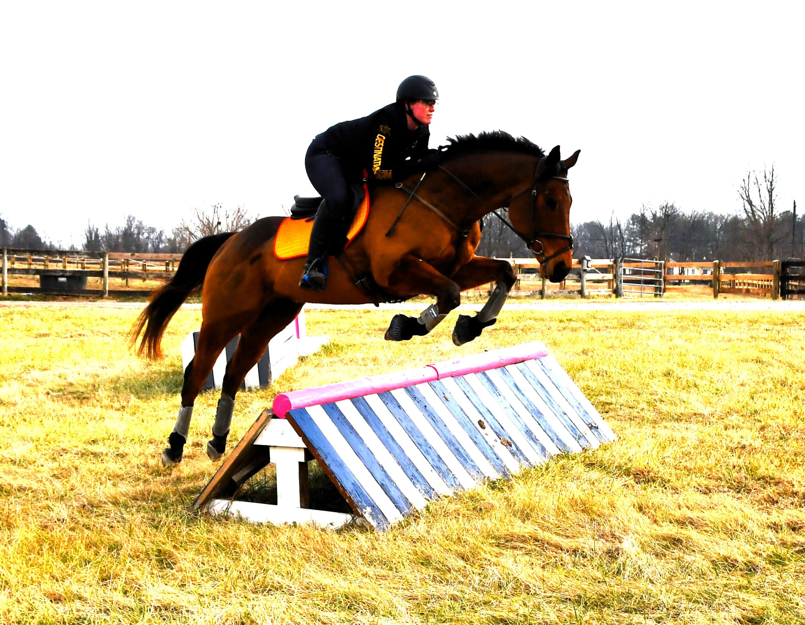 "Red" has been off the track since 2022 (purchased from his breeder) and has lots of hacking out experience - roads, trails, open fields, ditches, water, bridges both with big groups and alone. He's been on a hunter pace and some hunt trail rides as well. This past fall Red started doing more dressage and jumping training and has started to event- He scored a 21 in his first event! He's a lovely mover and scopey jumper! He is currently competing BN, schooling novice with ease, and shows excellent potential to progress quickly. Red also has an excellent temperament and is suitable for an adult amateur or junior/young rider to bring along.