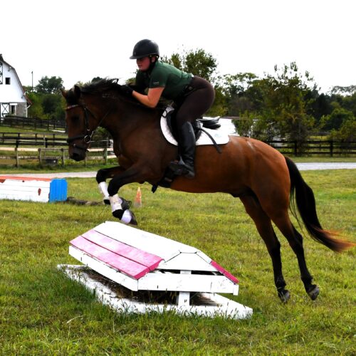 "Duke" is a lovely prospect! He is a great mover and loves to jump! He is currently doing training level dressage, jumping starter level SJ/XC, and hacking out nicely. Duke is smart and easy to work with. He shows excellent potential as a sport horse! Duke is starting to compete this fall and will progress quickly!