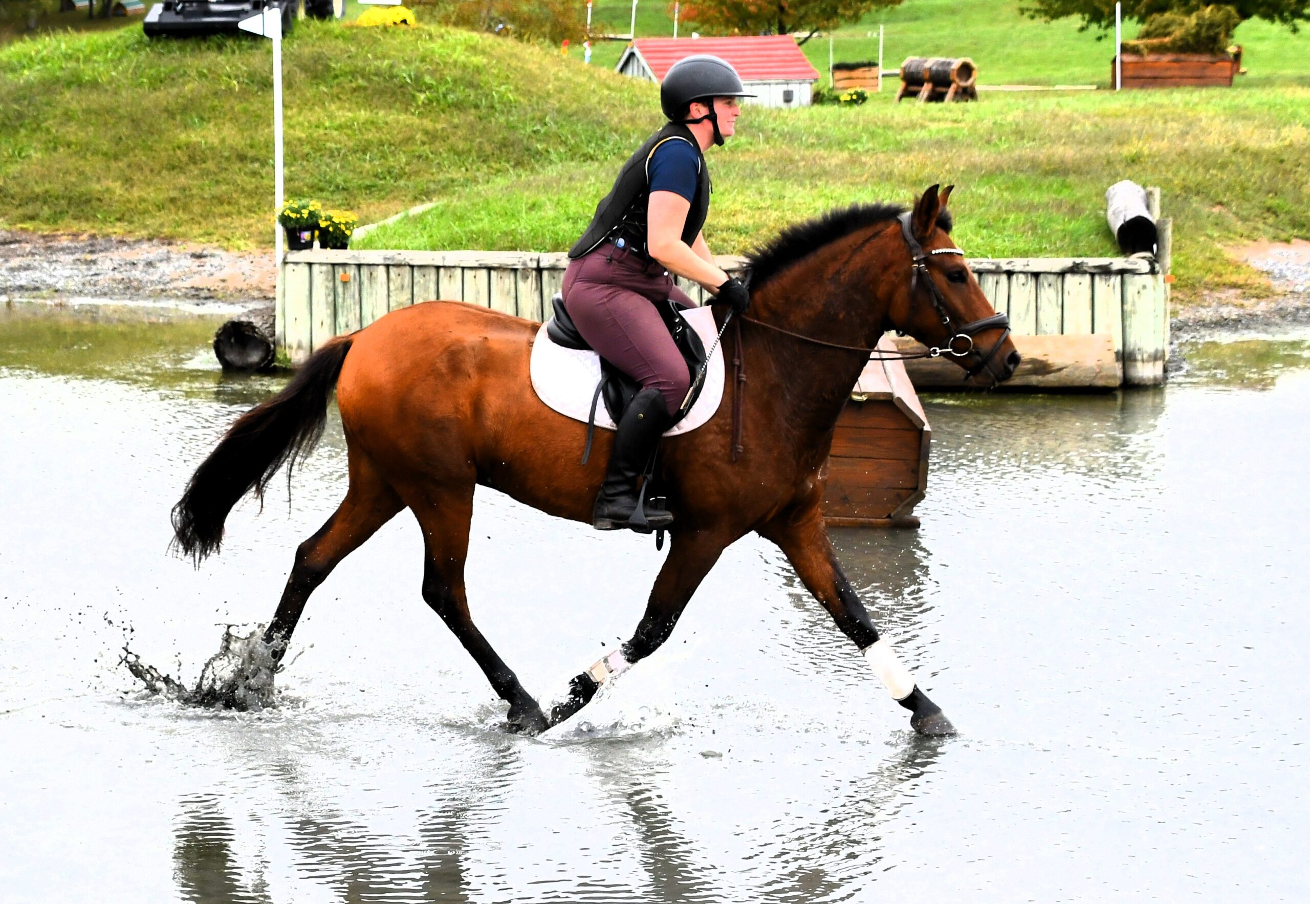 "Duke" is a lovely prospect! He is a great mover and loves to jump! He is currently doing training level dressage, jumping starter level SJ/XC, and hacking out nicely. Duke is smart and easy to work with. He shows excellent potential as a sport horse! Duke is starting to compete this fall and will progress quickly!